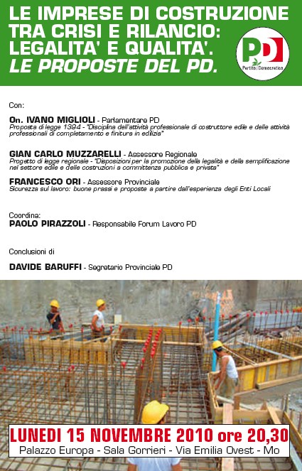 Le imprese di costruzione tra crisi e rilancio: legalità e qualità. Le proposte del Pd