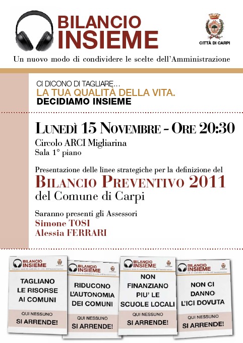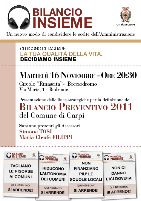 Parteciperò a due iniziative sul Bilancio del Comune la prossima settimana, pubblico qui i volantini: