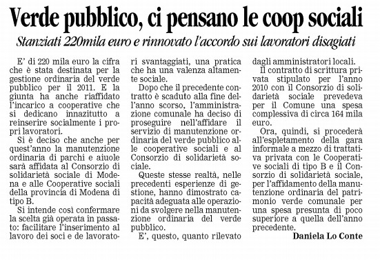 Gazzetta: Verde pubblico ci pensano le coop sociali