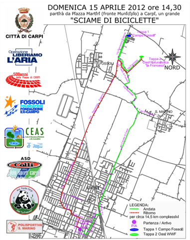 La biciclettata si snoderà per le vie di Carpi e periferia nord fino all’ex-Campo di concentramento di Fossoli, dove ci sarà una breve sosta e visita guidata a cura dei Volontari del campo