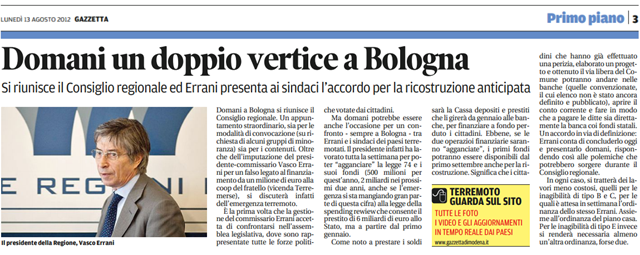 Gazzetta di Modena: Domani un doppio vertice a Bologna.