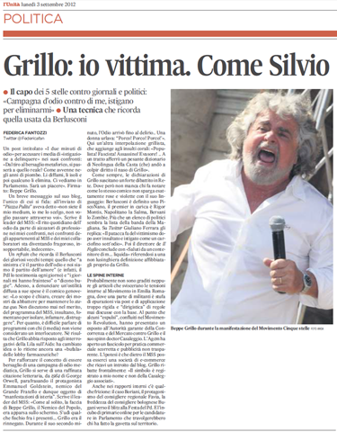 Qui sotto articolo dell’Unità di oggi sul vittimismo di Grillo.