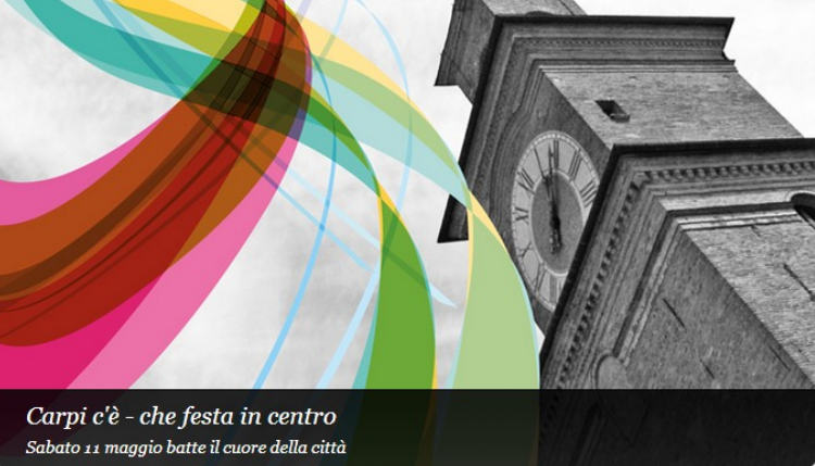 Carpi c’è-che festa in centro ritorna dopo il successo della festa dell’8 settembre scorso. Sabato 11 maggio il centro storico della città dei Pio sarà infatti sede di un grande happening con oltre 200 iniziative. In questa occasione già dal pomeriggio e fino alle due di notte i commercianti del centro in collaborazione con ConCarpi (dove siedono i rappresentanti di Comune e associazioni di categoria) proporranno un fittissimo programma di iniziative, in via di definizione e che presto sarà diffuso nella sua interezza. Appuntamenti per grandi e piccini, musica (una ventina i gruppi e i dj set che si esibiranno in ogni angolo del cuore della città), degustazioni eno-gastronomiche e buffet, mostre, spettacoli: Carpi c’è proporrà tutto questo, con un occhio al divertimento, per tutti i gusti. Corso Cabassi, corso Fanti, piazza dei Martiri ma anche via Matteotti, via Mazzini, via Nova, via Rovighi e via Paolo Guaitoli saranno coinvolte da Carpi c’è e non mancherà nemmeno via Berengario. Senza dimenticare piazzale Re Astolfo, ovviamente corso Alberto Pio, via Aldrovandi e piazza Garibaldi, via San Francesco e corso Roma e tante altre.