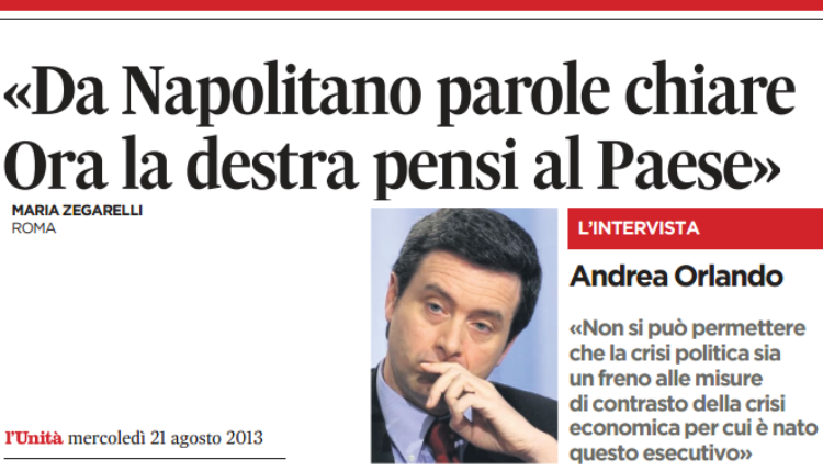 «Enrico Letta ha detto una cosa molto importante sin dall’inizio del suo mandato: questo governo non deve vivere a tutti i costi, deve vivere se riesce a produrre risultati. Un costo insostenibile, rispetto all’azione di governo, sarebbe quello di sprecare il margine di manovra che è stato recuperato in Europa, sul fronte delle disponibilità finanziarie e su quello del contenimento del debito per il calo dello spread, per esigenze di carattere politico».