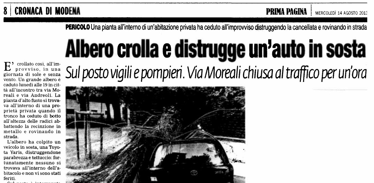 (CRONACA LOCALE RIPORTA LA CADUTA DI UN ALBERO)