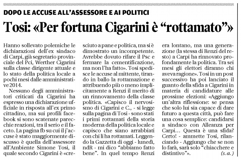 articolo della Gazzetta di Modena di oggi che riprende alcuni post che ho pubblicato su Facebbok.