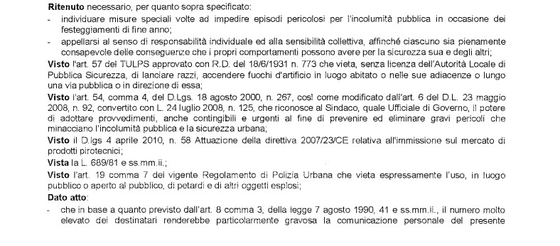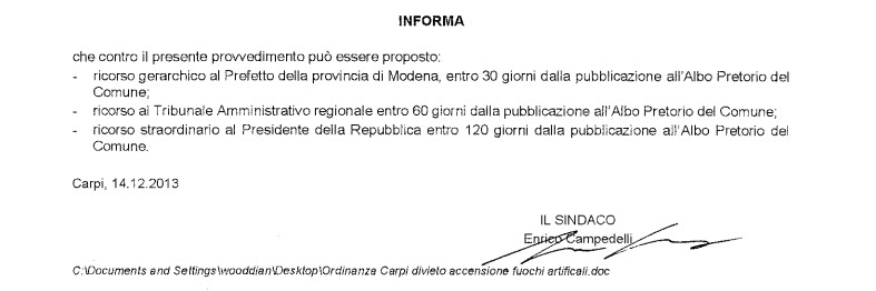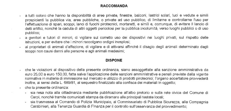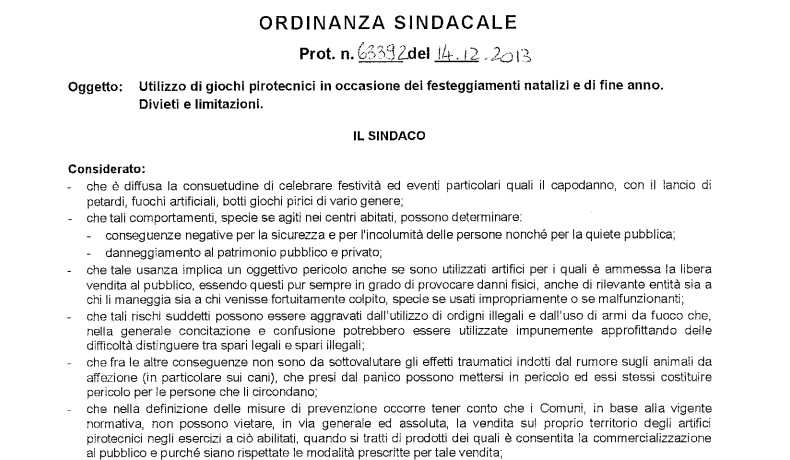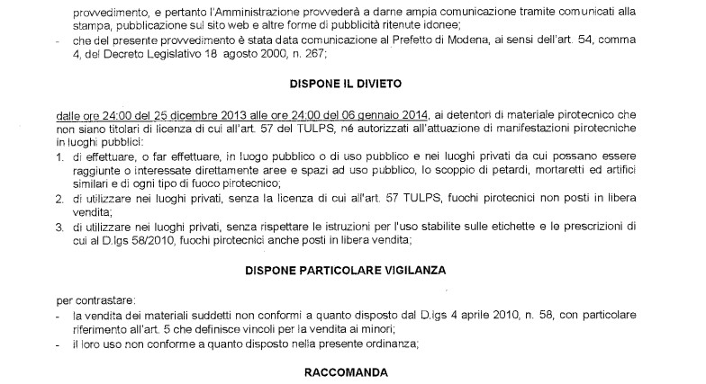 Il Sindaco di Carpi ha firmato l’ordinanza che limita l’uso dei giochi pirotecnici durante i festeggiamenti dell’ultimo dell’anno.