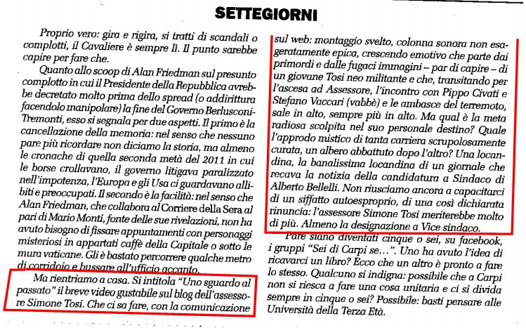 Cosa è successo? Semplice; in “settegiorni” bellissima rubrica dello splendido settimanale Voce, che regolarmente dedica righe al sottoscritto (e come diceva un politico di lungo corso, “parlane bene o parlarne male, l’importante è parlarne” riferendosi alle critiche che la stampa gli rivolgeva), questa settimana prende Fischi per Fiaschi. In occasione del decimo anno di Facebook questa piattaforma social ha “regalato” a tutti i sui iscritti la possibilità di vedere un “video” che riassume la sua storia su Facebook. Un video ideato quindi dalla stessa Facebook. Un video che prende in automatico alcune informazioni dai profili personali. Da qualche settimana tutti gli utenti di Facebook hanno trovato un pulsante o un richiamo a vedere il “proprio video”, chi guarda il proprio video, questo gli compare nella bacheca personale. Ecco quindi che Florio, acuto e puntuto giornalista senza saperlo suggerisce a Bellelli di nominare come vice sindaco non il sottoscritto, inconsapevole autore del video, ma lo stesso Zuckemberg, capisco che il direttore di Voce piace ragionare sempre in grande ed immagina di non vivere a Carpi ma nella SiliconValley, ma forse questa volta ha esagerato (in tutti i sensi)…. Ovviamente per non vedermi assegnato la prossima settimana il premio Leonid Il’ič Brežnev dichiaro da subito che sono ironico.