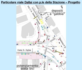 In via Dallai l’intervento permetterà una riqualificazione della via, e saranno collocate per la prima volta nel nostro Comune delle “Gabbie porta Bici” che hanno l’obiettivo di poter favorire una mobilità alternativa all’uso della macchina, infatti un cittadino potrà raggiungere dal centro storico la stazione dei treni, collocare la sua bici in sicurezza in una delle gabbie e prendere il treno.