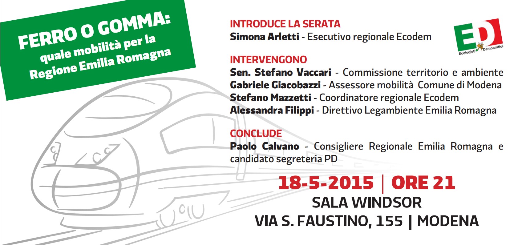 Gli Ecologisti Democratici modenesi intendono stimolare il confronto pubblico sui temi della mobilità di persone e merci nel nostro territorio, chiedendo un impegno specifico alle nuove amministrazioni regionali, locali e al governo nazionale.