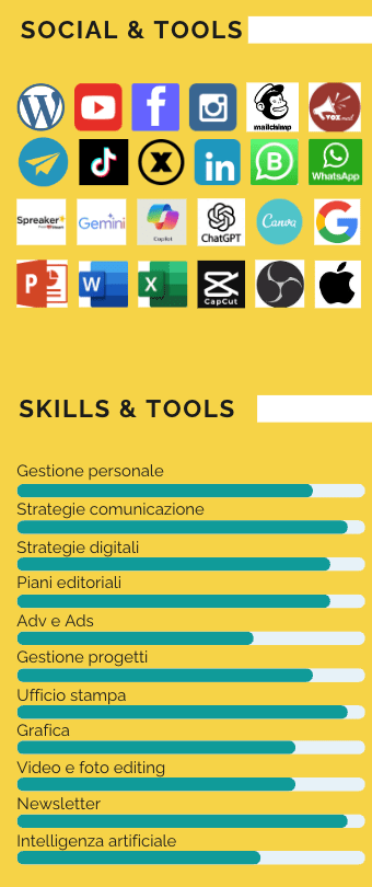 Sono formatore sui temi della comunicazione digitale, con particolare attenzione all’uso dell’intelligenza artificiale nella progettazione dei messaggi, nell’ottimizzazione dei flussi editoriali e nell’analisi dei dati per la valutazione dell’impatto comunicativo. Integro costantemente strumenti di AI generativa e automazione per aumentare l’efficacia e l’efficienza dei progetti di comunicazione.